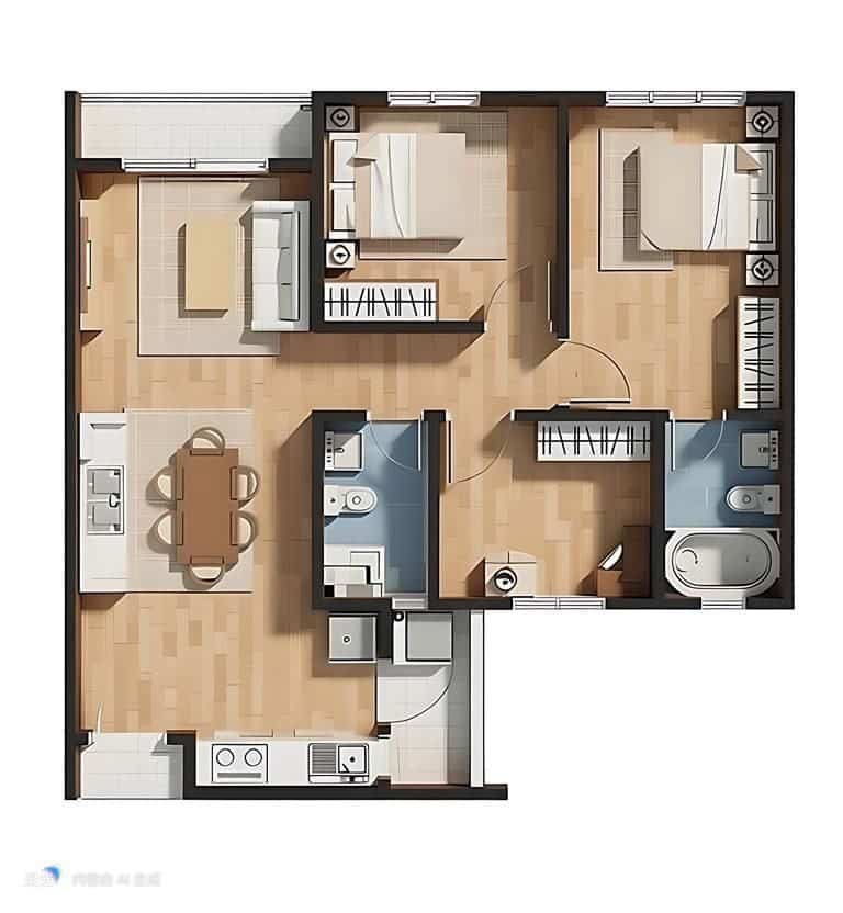 | Layout | 3 rooms 2 bath - Balcony - Yarl |